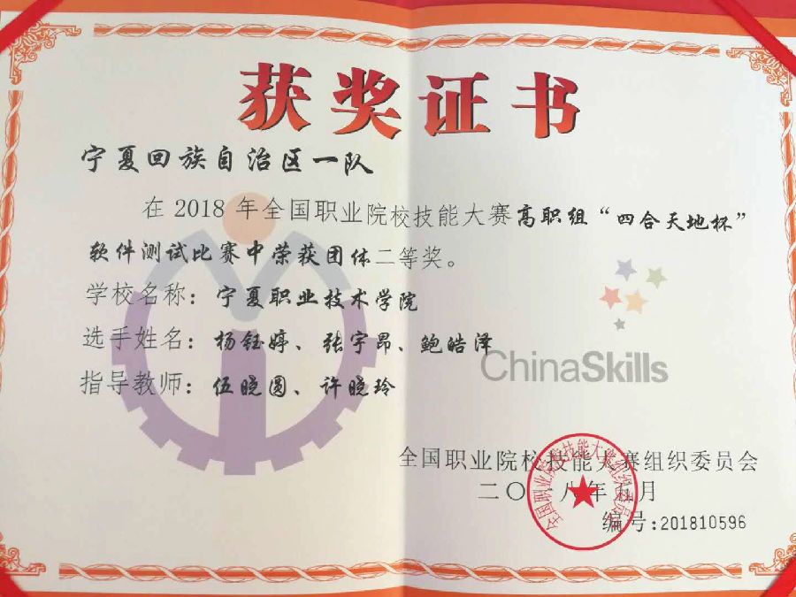 5月29日,2018年全国职业院校技能大赛高职组“软件测试”赛项,在许昌职业技术学院拉开帷幕,来自全国的96个代表队500余名选手参赛。 由w88win伍晓圆、许晓玲两位老师指导的杨钰婷、张宇昂、鲍皓泽三位同学参加了此次比赛。经过选手的不懈努力,最终在该项目比赛中获得二等奖。